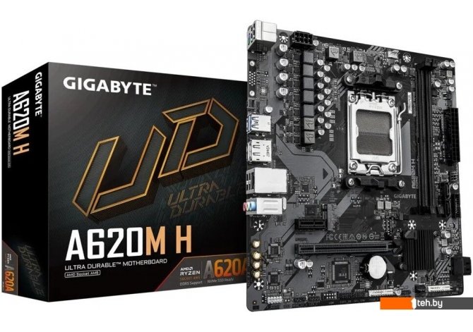 Фотографии, описание и технические характеристики модели материнской платы для компьютера Gigabyte A620M H (rev. 2.2) взяты из открытых источников, официального сайта производителя или представительства Gigabyte в Республике Беларусь.