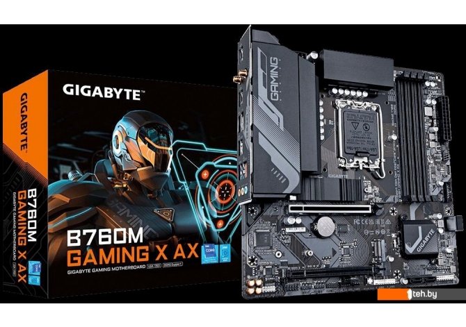Фотографии, описание и технические характеристики модели материнской платы для компьютера Gigabyte B760M Gaming X AX (rev. 1.x) взяты из открытых источников, официального сайта производителя или представительства Gigabyte в Республике Беларусь.