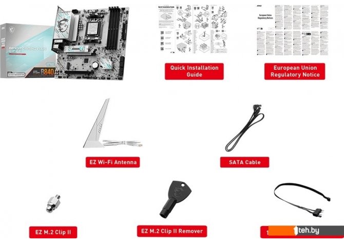 | Комплектация | - кабель SATA - EZ Wi-Fi антенна - 1-2 EZ кабель - винт EZ M.2 Clip II - EZ M.2 Clip II экстрактор - документация |