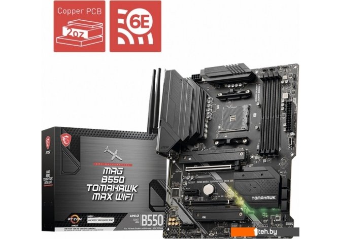 Фотографии, описание и технические характеристики модели материнской платы для компьютера MSI MAG B550 Tomahawk Max WiFi взяты из открытых источников, официального сайта производителя или представительства MSI в Республике Беларусь.