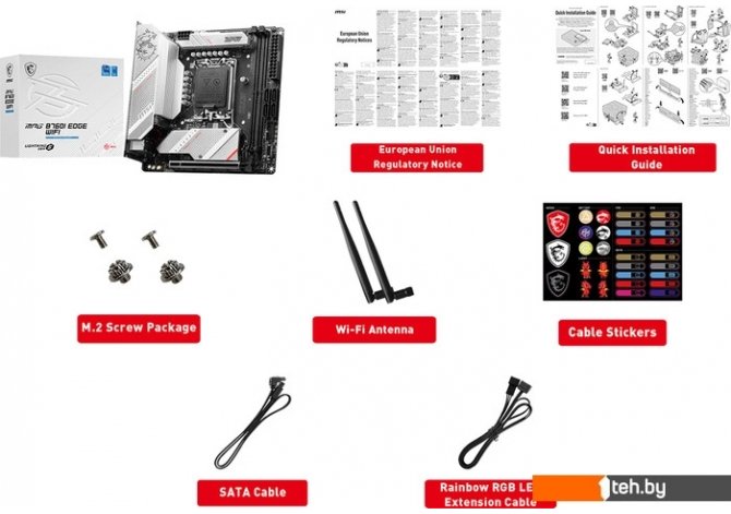 Фотографии, описание и технические характеристики модели материнской платы для компьютера MSI MPG B760I Edge WiFi взяты из открытых источников, официального сайта производителя или представительства MSI в Республике Беларусь.