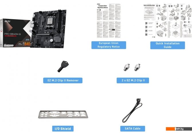 Фотографии, описание и технические характеристики модели материнской платы для компьютера MSI Pro B840M-B взяты из открытых источников, официального сайта производителя или представительства MSI в Республике Беларусь.