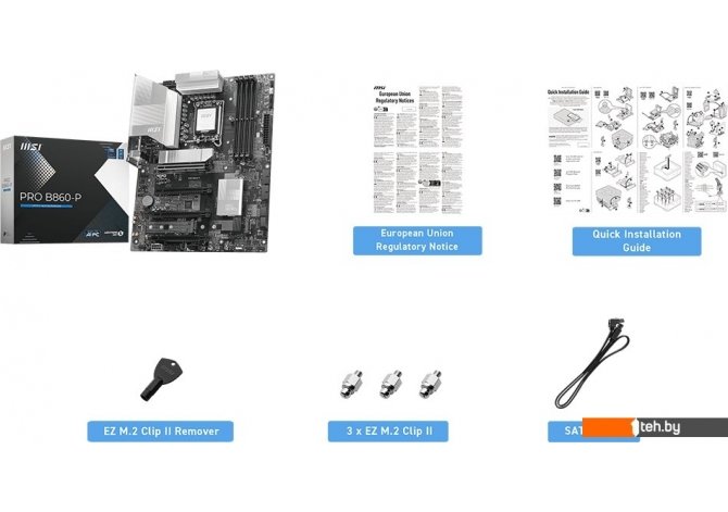 Фотографии, описание и технические характеристики модели материнской платы для компьютера MSI Pro B860-P взяты из открытых источников, официального сайта производителя или представительства MSI в Республике Беларусь.