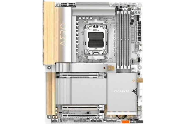 Фотографии, описание и технические характеристики модели материнской платы для компьютера Gigabyte X870E Aero X3D Wood взяты из открытых источников, официального сайта производителя или представительства Gigabyte в Республике Беларусь.