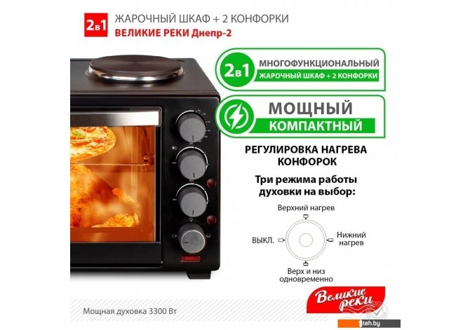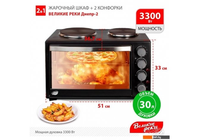 | Информация | ??Текст описания составлен при помощи искусственного интеллекта. - Мини-печь Великие Реки Днепр-2 — это идеальный помощник на вашей кухне, который сочетает в себе функциональность и компактность. С её помощью вы сможете готовить разнообразные блюда, используя верхний и нижний нагрев, что делает её универсальным решением для запекания, жарки и подогрева. - Благодаря механическому таймеру и термостату, вы сможете точно контролировать процесс приготовления. Максимальная температура в 250 °C позволяет достичь идеальных результатов, будь то хрустящая корочка на пицце или равномерно пропечённый пирог. - Объём в 30 литров и стандартные эмалированные противни обеспечивают достаточно места для приготовления блюд на всю семью. А наличие решётки и тефлонового коврика для выпечки делает процесс ещё более удобным и приятным. - Не забывайте, что мини-печь требует правильного ухода, чтобы служить вам долго. Нержавеющая сталь внутренних стенок легко чистится и сохраняет свой первоначальный вид. - Компактные размеры (ширина 50.5 см, высота 33 см и глубина 36 см) позволяют разместить её даже на небольшой кухне, а вес всего 8.4 кг делает её мобильной и удобной для перемещения. - С двумя конфорками на электрической варочной поверхности вы сможете одновременно готовить несколько блюд, что значительно сэкономит ваше время. Мини-печь Великие Реки Днепр-2 — это отличный выбор для тех, кто ценит качество и удобство в приготовлении пищи! |