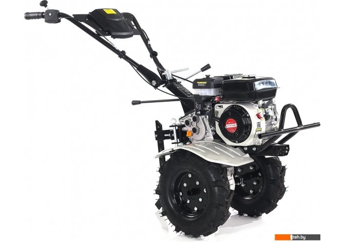 | Комплект поставки | - Мотоблок с рулевой колонкой; - Руль с тросами и рычагами управления; - Коробка с комплектом для сборки почвенных фрез; - Грязезащитные щитки; - Рычаг регулятора глубины культивации (сошник); - Руководство по эксплуатации; - Пневматические колеса. |