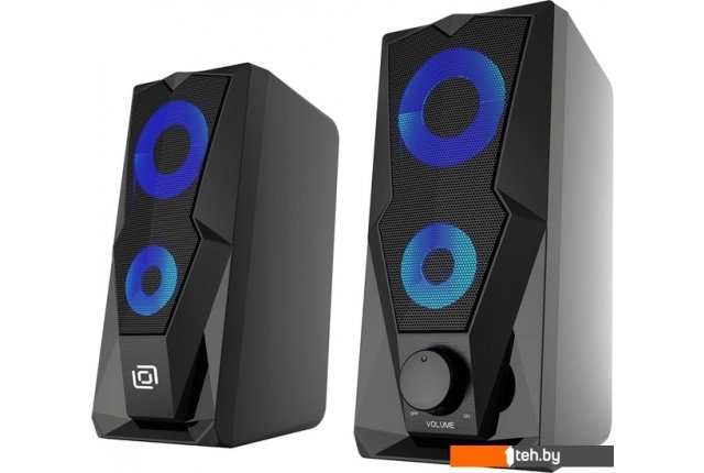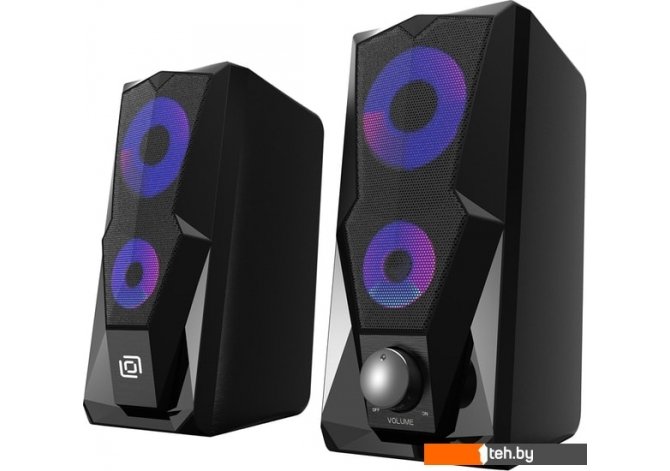 | Информация | Компьютерная акустика OK-127 с многоцветной подсветкой, реагирующей на касания. |