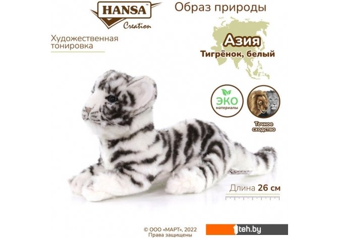 Фотографии, описание и технические характеристики модели Hansa Сreation Детеныш тигра белый 4089 (26 см) взяты из открытых источников, официального сайта производителя или представительства Hansa Сreation в Республике Беларусь.