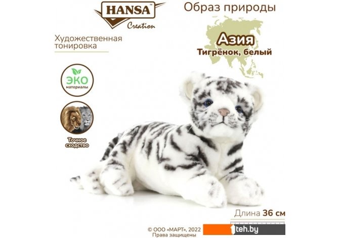 Фотографии, описание и технические характеристики модели Hansa Сreation Детеныш тигра белый 4754 (36 см) взяты из открытых источников, официального сайта производителя или представительства Hansa Сreation в Республике Беларусь.