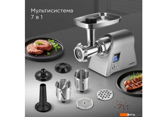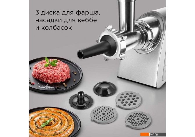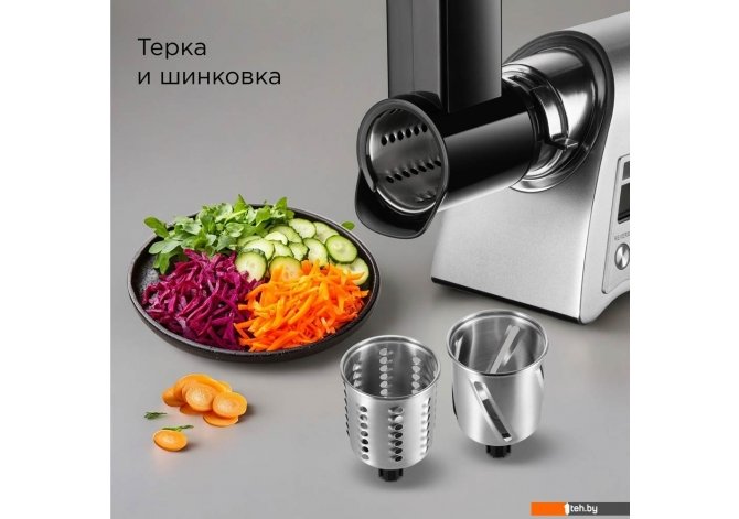 | Информация | РЕДМОНД MG501 — мощная и функциональная мясорубка, которую можно использовать еще и как овощерезку. Всего за одну минуту MG501 быстро и эффективно справится с обработкой до 2,5 кг продуктов. Благодаря литому корпусу из металла она будет устойчиво стоять на столе даже во время интенсивной работы. В комплекте идут 3 диска для фарша, насадки для овощей, кеббе и колбасок: MG501 быстро измельчит мясо в фарш и нашинкует овощи в салат. Насадки удобно хранить в отсеке для хранения аксессуаров. |