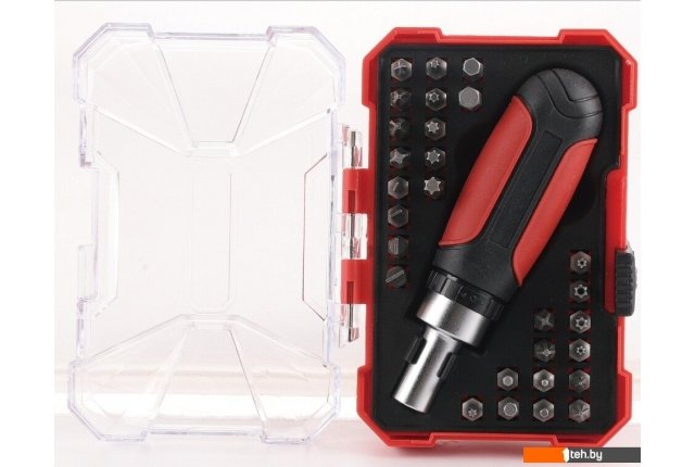| Комплектация | ? Отвертка-держатель с трещоткой - 1 шт. ? Адаптер 25мм / 1/4" - 1 шт. ? Биты 25мм / 1/4" - 27 шт.: ? Биты SL: SL3, SL4, SL5, SL6 мм - 4 шт. ? Биты TORX: T10, T15, T20, T25, T30 - 5 шт. ? Биты TORX с отверстием: TH10, TH15, TH20, TH25 - 4 шт. ? Биты PZ: PZ0, PZ1, PZ2, PZ3 - 4 шт. ? Биты PH: PH0, PH1, PH2, PH3 - 4 шт. ? Биты HEX: H2, H2.5, H3, H4, H5, H6 мм - 6 шт. |