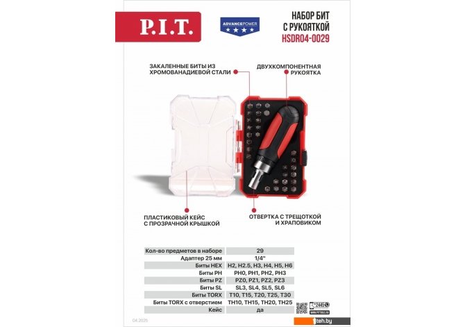 Фотографии, описание и технические характеристики модели набора P.I.T. Advance HSDR04-0029 (29 предметов) взяты из открытых источников, официального сайта производителя или представительства P.I.T. в Республике Беларусь.