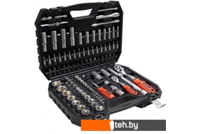 | Комплектация | - Торцевые головки 1/2" 17 предмет(ов) (10, 11, 12, 13, 14, 15, 16, 17, 18, 19, 20, 21, 22, 24, 27, 30, 32 мм)- Торцевые головки 1/4" 13 предмет(ов) (4, 4.5, 5, 5.5, 6, 7, 8, 9, 10, 11, 12, 13, 14 мм)- Глубокие торцевые головки 1/2" 5 предмет(ов) (14, 15, 17, 19, 22 мм)- Глубокие торцевые головки 1/4" 8 предмет(ов) (6, 7, 8, 9, 10, 11, 12, 13 мм)- Трещотка (1/2", 1/4")- Т-образный вороток 1/4"- Кардан 1/2", 1/4"- Удлинители 1/2" 2 предмет(ов) (125мм, 250 мм)- Удлинители 1/4" 2 предмет(ов) (50 мм, 100 мм)- Головки свечные 1/2" 2 предмет(ов) (16 мм, 20 мм)- Переходник 1/2"(m)x3/8"(f)- Угловые шестигранные ключи 3 предмет(ов) (1,5; 2; 2,5 мм)- Отвертка под биты 1/4"Биты (насадки-отвертки) 32 (hex, torx, phillips, pozidriv, slotted)- Головки со вставкой (1/2") |