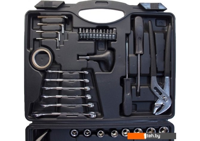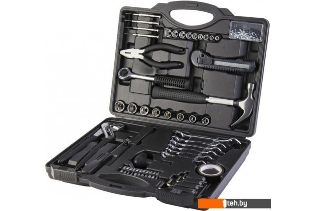 | Комплектация | - Шестигранный ключ: 3, 4, 5, 6 мм: 4 шт.- Изолента: 1 шт.- Бита: 11 шт.- Комбинированный гаечный ключ: 6 шт.8, 10, 11, 12, 13, 15 мм:- Рукоятка для бит: 1 шт.- Отвертка: 2 шт.- Переставные клещи: 1 шт.- Торцевые головки квадрат 3/8": 8 шт.10, 11, 12, 13, 14, 15, 17, 19 мм.- Молоток-гвоздодер: 1 шт.- Рукоятка с трещеткой квадрат 3/8": 1шт.- Канцелярский нож: 1 шт.- Комбинированные пассатижи: 1 шт.- Часовая отвертка: 4 шт.- Торцевые головки квадрат 1/4": 5-13 мм: 9 шт.- Футляр с крепежом: 1 шт. |