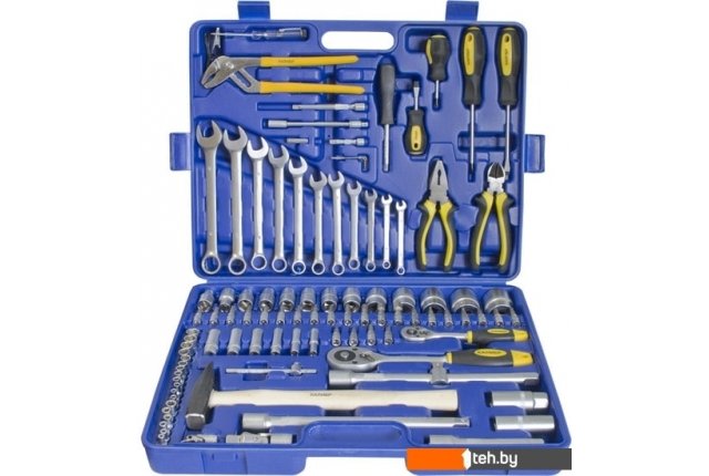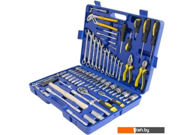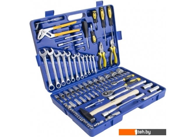 | Комплектация | 11 комбинированных ключей 6мм, 7мм, 8мм, 10мм, 11мм, 12мм, 13мм, 14мм, 15мм, 17мм, 19мм.Пассатижи переставные 250мм.Плоскогубцы комбинированные 180мм.Кусачки боковые 160мм.Молоток слесарный 300г.Отвертки с прорезиненной, 2-х компонентной ручкой:шлиц: 6х38мм, 6х100мм.PHILLIPS: РН2х38мм, РН2х100мм.Автомобильный тестер 12В/24В.3 ключа торцевых шестигранных: 1.5мм, 2мм, 2.5мм.Для квадрата 1/4" DR12 шестигранных головок: 4мм, 4.5мм, 5мм, 5.5мм, 6мм, 7мм, 8мм, 9мм, 10мм, 11мм, 12мм, 13мм.6 шестигранных глубоких головок: 6мм, 7мм, 10мм, 11мм, 12мм, 13мм.6 головок с Е-профилем: Е4, Е5, Е6, Е7, Е8, Е10.2 удлинителя: 50мм, 100мм.Удлинитель гибкий: 150мм карданный шарнир.1 трещотка: с быстрым сбросом на 48 зубцов.Вороток Т-образный: 110мм.Ручка-удлинитель: 150мм.Адаптер для вставок: 30мм.Адаптер для вставок магнитный: 1/4"-1/4".30 головок со вставками:шестигранная: 3мм, 4мм, 5мм, 6мм, 8мм, 10мм, 12мм.TORX: T8, Т10, Т15, Т20, Т25, Т27, Т30.шлиц: 3мм, 4мм, 4,5мм, 5мм, 5.5мм, 6мм, 7мм.PHILLIPS: РН.1, РН.2, РН.3 POZI: PZ.1, PZ.2, PZ.3.Для квадрата 1/2" DR13 шестигранных головок: 10мм, 12мм, 13мм, 14мм, 15мм, 16мм, 17мм, 18мм, 19мм, 20мм, 21мм, 22мм, 23мм, 24мм, 25мм, 26мм, 27мм, 30мм, 32мм.2 головки свечных: 16мм, 21мм карданный шарнир.2 удлинителя: 125мм, 250мм.1 трещотка с быстрым сбросом на 48 зубцов.Адаптер трехсторонний. |