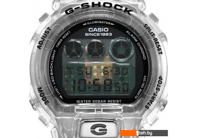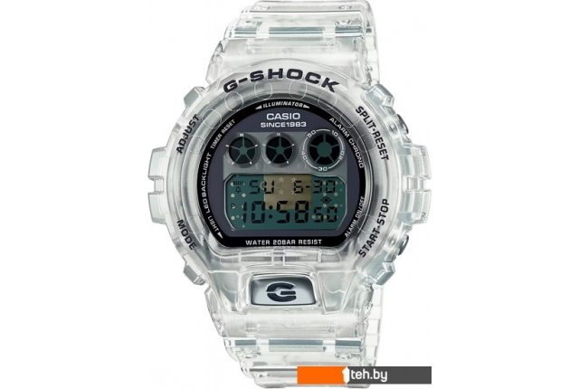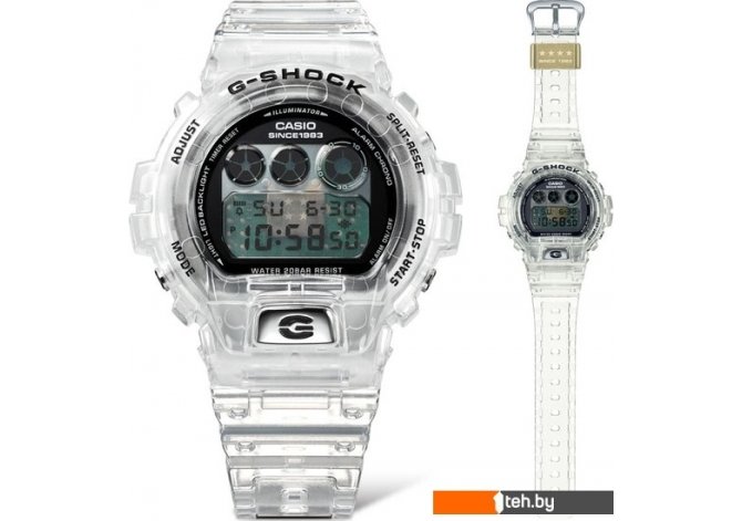 | Информация | Express yourself in no uncertain terms with the G-SHOCK 40th anniversary Clear Remix lineup — popular G-SHOCK designs deconstructed with see-through components for the clearest look yet. See-through materials for the band, case, dial, LCD, and buttons provide a behind-the-scenes view of the module substrate printed with the G mark and G-SHOCK logo. The case back features the Eric Haze-designed 40th logo, and the band loop is engraved with four stars in a nod to this special anniversary. These details and the first-ever use of a see-through case made of clear glass fiber diamide deliver a singular design worthy of an exceptional limited-edition G-SHOCK. The new lineup includes watches modeled after multiple iconic G-SHOCK timepieces: the very first G-SHOCK, the DW-5000; the classic digital DW-5600; the DW-6900 with distinctive front button design; or the GA-2100/GMA-S2100 or the GA-110/GMA-S110, which can be worn on their own or as part of a matching set. |
