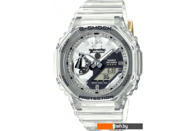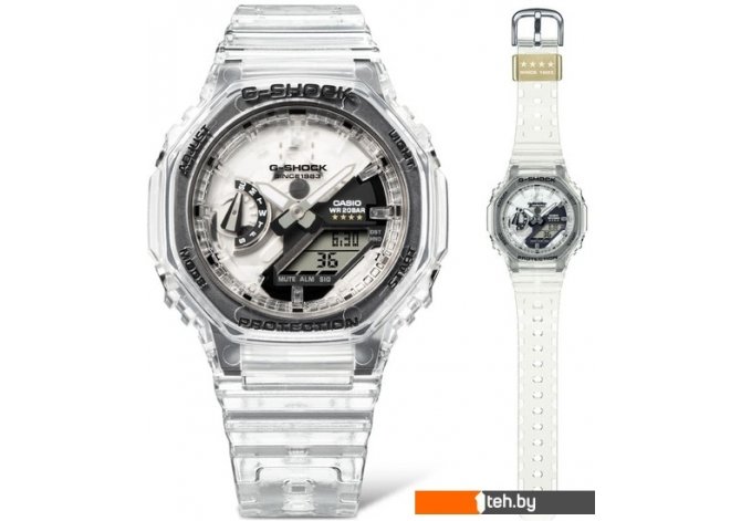 | Информация | ? Наручные часы Casio G-Shock GMA-S2140RX-7A - это уникальный дизайн, посвященный 40-летию G-SHOCK. ? Прозрачные материалы ремешка, корпуса, циферблата, ЖК-дисплея и кнопок позволяют заглянуть за кулисы подложки модуля, на которой напечатан знак G и логотип G-SHOCK. ? На задней крышке изображен логотип 40-летия, разработанный Эриком Хейзом, а на петле ремешка выгравированы четыре звезды в знак уважения к этому особому юбилею. ? Эти детали и впервые в истории использование прозрачного корпуса из прозрачного диамида стекловолокна создают уникальный дизайн, достойный исключительной модели G-SHOCK. |