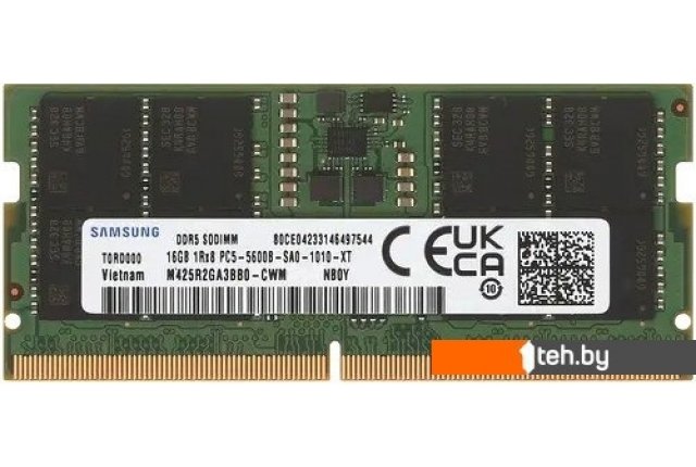 Фотографии, описание и технические характеристики модели оперативной памяти Samsung 16ГБ DDR5 SODIMM 5600 МГц M425R2GA3BB0-CWM взяты из открытых источников, официального сайта производителя или представительства Samsung в Республике Беларусь.