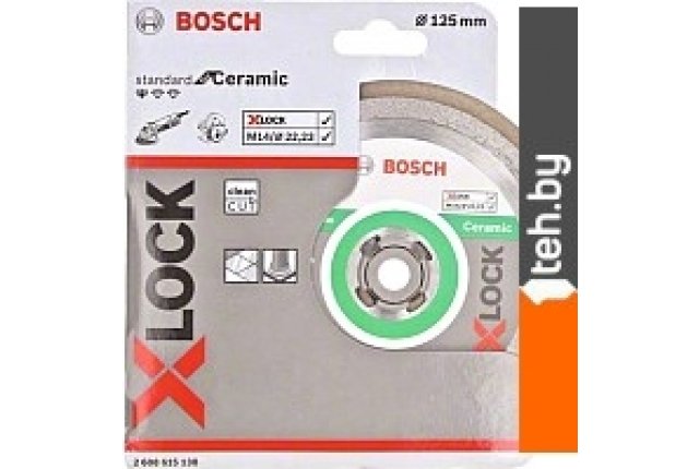 | Информация | * Алмазный диск X-LOCK Standard for Ceramic предназначен для различных работ по керамике* Универсальное экономичное решение для обработки керамической плитки* Отрезная кромка, наносимая непосредственным спеканием* Предназначен для углошлифовальных машин с системой X-LOCK, а так же подходит для обычных углошлифовальных машин |