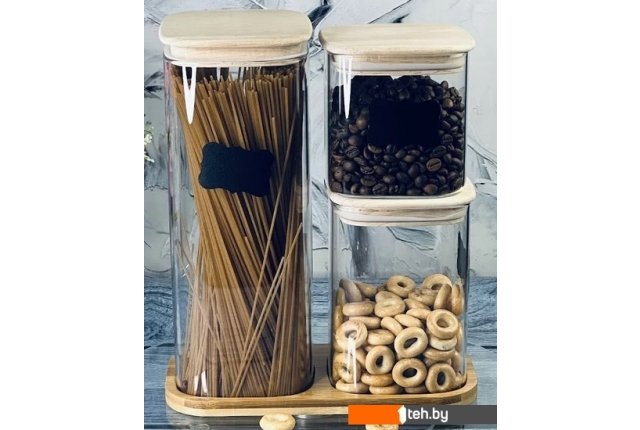 | Размеры контейнеров в наборе | 10,5?10,5?10,5 см; 10,5?10,5?14 см; 10,5?10,5?25 см; размер подставки — 27?9 см |