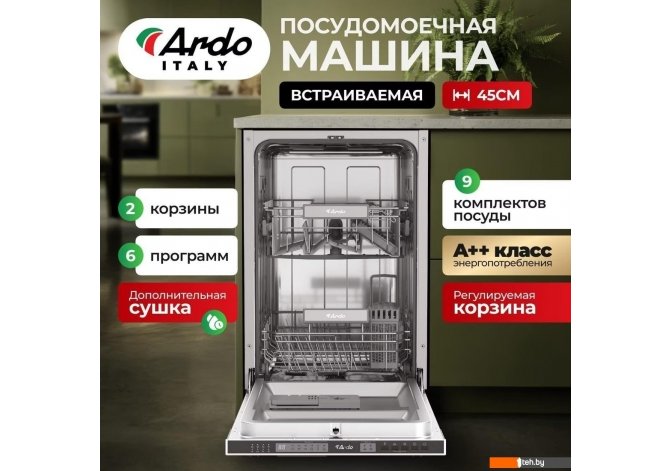 Фотографии, описание и технические характеристики модели посудомоечной машины ARDO DBEA9452B2 взяты из открытых источников, официального сайта производителя или представительства ARDO в Республике Беларусь.