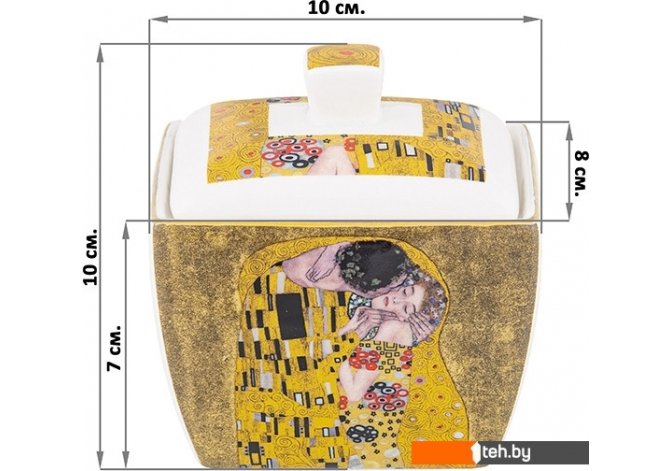 | Информация | ? Сахарница Elan Gallery Поцелуй / 420506 - идеальное решение для организации чаепитий. ? Украшена роскошными репродукциями картины Густава Климта и обрамлена золотым окаймлением. ? Выполнена из высококачественного фарфора New Bone China, который экологичен в производстве. ?? Не подходит для использования в микроволновой печи и посудомоечной машине. ? Поставляется в подарочной упаковке, идеально подойдет в качестве подарка для родных и близких. |