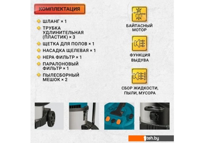 | Информация | - Пылесос для сухой и влажной уборки BORT BSS-2460-STORM - это высокопроизводительное устройство, которое обеспечивает эффективную очистку поверхности от пыли и грязи. Он оснащен двумя байпасными моторами, каждый из которых имеет мощность 1200Вт, что позволяет достичь максимальной производительности, объема всасываемого воздуха и эффективности уборки. - Одной из важных особенностей этого пылесоса является его очень большой бак объемом 60 литров. Это означает, что вы сможете осуществлять длительные сеансы уборки, не беспокоясь о частой замене мешков или опустошении контейнера для сбора мусора. Кроме того, наличие сливного отверстия упрощает процесс слива бака с грязной водой. - Длинный шланг 4 метра и длинный кабель 8 метров позволяют удобно перемещаться и осуществлять уборку в любых уголках комнаты без необходимости постоянного переключения розеток. Также, эта модель пылесоса имеет суммарную мощность 2400Вт, что обеспечивает высокую производительность и эффективность в работе при силе всасывания 22 кПа. - Очень важным параметром для оценки эффективности пылесоса является его расход воздуха, который в данной модели составляет 205 литров в секунду. Это говорит о том, что пылесос BORT BSS-2460-STORM обладает высокой мощностью и скоростью всасывания и может справляться с самыми большими объемами мусора. - Класс пыли L гарантирует эффективное удаление пыли и мелких частиц, поэтому этот пылесос идеально подходит для работы на стройке или в качестве системы аспирации в мастерской. - Благодаря полуавтоматической очистке фильтра, вы сможете поддерживать высокую производительность пылесоса без необходимости постоянной замены и чистки фильтра. - Металлические защелки бака обеспечивают надежное закрепление и предотвращают его случайное раскрытие во время работы. Это очень важный аспект безопасности и гарантированно предотвращает возможные неприятности и непредвиденные ситуации. Пылесос оснащен антистатической цепочкой, что делает его безопасным и надежным в использовании. - Пылесос BORT BSS-2460-STORM представляет собой идеальное решение для профессионалов. Его высокая производительность, широкий функционал и удобство в использовании позволяют сэкономить время и усилия при уборке больших площадей. Воспользуйтесь этим мощным и надежным пылесосом, чтобы ваше помещение всегда было идеально чистым и гигиеничным. Читать дальше |