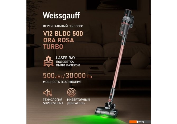 Фотографии, описание и технические характеристики модели пылесоса Weissgauff V12 BLDC 500 Ora Rosa Turbo взяты из открытых источников, официального сайта производителя или представительства Weissgauff в Республике Беларусь.