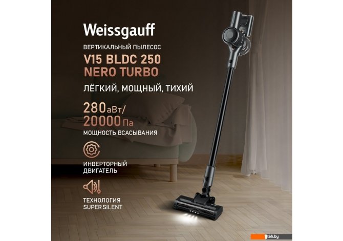 Фотографии, описание и технические характеристики модели пылесоса Weissgauff V15 BLDC 250 Nero Turbo взяты из открытых источников, официального сайта производителя или представительства Weissgauff в Республике Беларусь.