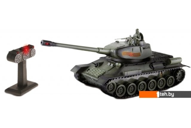 | Информация | Танк Т-34 (СССР) с ИК-пушкой в масштабе 1:24. В комплекте: тренировочная мишень с индикаторами жизни. Танк осуществляет движение вперёд/назад, повороты вправо/влево, подъёмы под углом 45°, круговое вращение на месте и поворот башни вправо/влево на 320°. При точном попадании по мишеням поочерёдно гаснут индикаторы и раздаются звуки взрыва. При наезде танка на мину происходит срабатывание механизма "взрыва". В игрушке предусмотрен демо-режим. |