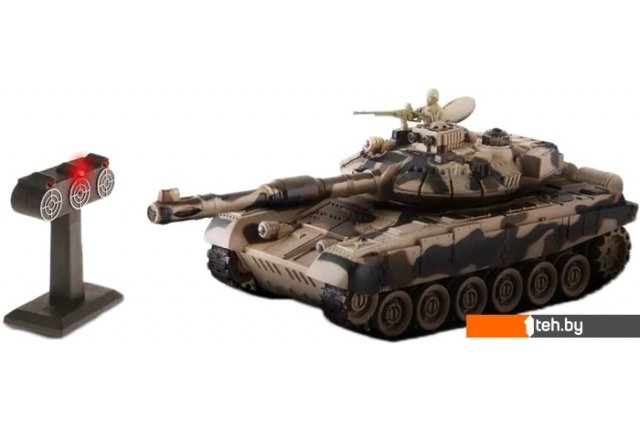 | Информация | Танк Т-90 (СССР) с инфракрасной пушкой в комплекте с тренировочной мишенью с индикаторами жизни выполнен в масштабе 1:24. Игрушка осуществляет движение вперёд и назад, поворачивает вправо и влево, преодолевает подъёмы под углом 45°, совершает круговое вращение на месте и поворот башни вправо-влево на 320°. При точном попадании по мишеням поочерёдно гаснут индикаторы и раздаются звуки взрыва. При наезде танка на мину происходит срабатывание механизма "взрыва". В игрушке предусмотрен демонстрационный режим. Уникальная функция: танк оснащён функцией боя. |