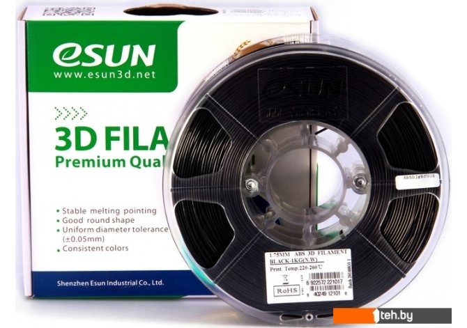 Фотографии, описание и технические характеристики модели eSUN ABS 1.75 мм 1000 г (черный) взяты из открытых источников, официального сайта производителя или представительства eSUN в Республике Беларусь.