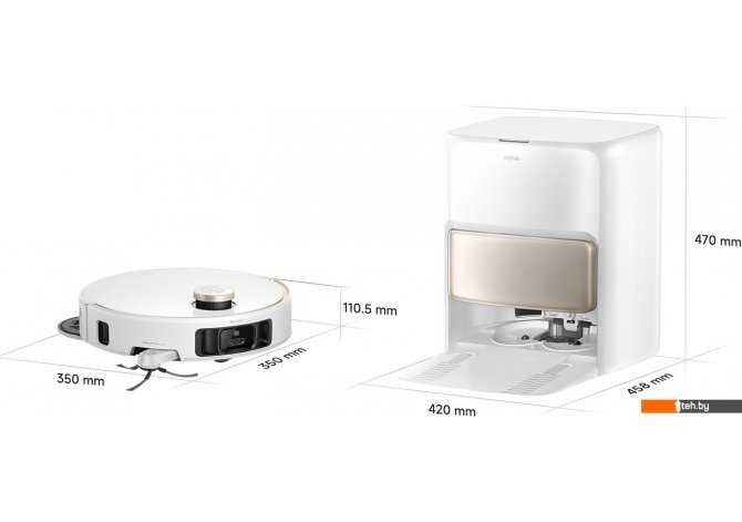 | Функциональные особенности базы | мойка швабры, сушка швабры, самоочистка пылесборника робота, заправка робота водой, автоматическая мойка поддона для швабр, мойка швабры с моющим средством |