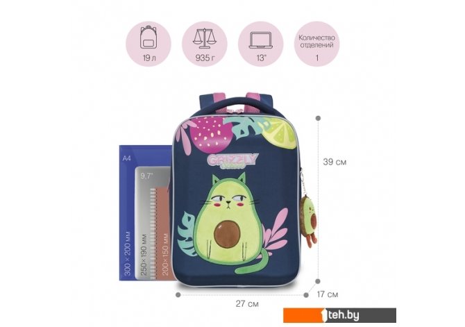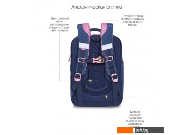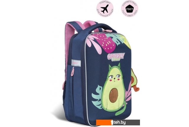 | Информация | Встречайте нашу новинку! Новый формованный ранец GRIZZLY серии Rap для детей школьного возраста ростом от 125 до 135 см. У ранца формованная лицевая часть, новая жесткая анатомическая спинка и жесткое дно на ножках. Содержимое надежно защищено. А еще такая конструкция равномерно распределяет нагрузку на спину. Чтобы не уставали руки и плечи, мы сделали широкие лямки и нагрудную стяжку со свистком. Конструкция ранца не деформируется при нагрузке и создает надежную защиту содержимого. У ранца два отделения. Основное отделение разбито на три отсека: для книг, тетрадей и папок А4, есть карман на молнии. Боковой кармашек на молнии для бутылочки с водой или разных мелочей. Для безопасности в темное время суток мы добавили со всех сторон светоотражающие элементы. За счет водо- и грязеотталкивающей пропитки ранец долго остается как новый. Если он все же чем-то испачкался, мы рекомендуем ручную стирку в холодной воде. |