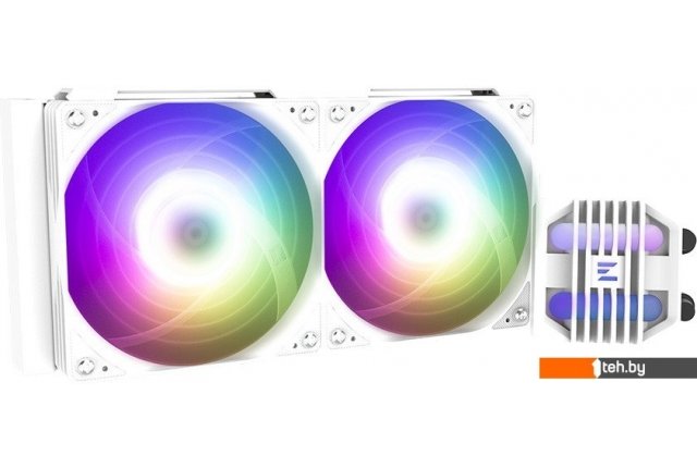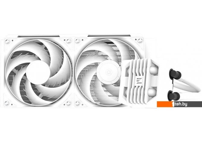 | Информация | -Ключевые характеристики Двухсекционная система жидкостного охлаждения для процессора с радиатором 240 мм и двумя 120-мм вентиляторами обеспечивает эффективное охлаждение благодаря медному основанию и алюминиевому радиатору. Поддерживаются современные сокеты AMD и Intel, включая AM5, AM4, LGA1851, LGA1700, LGA1200, LGA1150, LGA1151, LGA1151 v2, LGA1155 и LGA1156. Вентиляторы работают в диапазоне 800 - 2000 об/мин, уровень шума не превышает 29.7 дБ. -Преимущества и отличия Модель выделяется высокой производительностью за счет керамического подшипника помпы и гидродинамических подшипников вентиляторов, а также ARGB-подсветкой, синхронизируемой с большинством материнских плат. Использование антивибрационных прокладок обеспечивает дополнительную тишину работы, а длина трубок 400 мм делает монтаж гибким для различных корпусов. -Практичность Система совместима с широким спектром актуальных процессорных платформ, что удобно для сборщиков ПК и апгрейда. Подключение вентиляторов через 4-pin с поддержкой PWM позволяет автоматизировать регулировку оборотов, а ARGB-подсветка и 3-pin ARGB 5V интерфейс упрощают интеграцию подсветки в единую экосистему ПК. -Уникальность Дизайн водоблока вдохновлен каналами кастомных СВО, что подчеркивается динамическим световым эффектом, имитирующим движение жидкости. Запатентованные аэродинамические лопасти Shark Fin и усиленная конструкция помпы гарантируют эффективное и долговечное охлаждение даже при высоких нагрузках. Читать дальше |