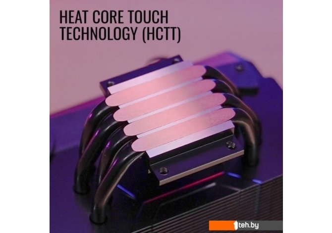 | Информация | Система воздушного охлаждения процессора с поддержкой ШИМ и ARGB-подсветкой на верхней и боковой панелях корпуса. В основе конструкции — технология Heat Core Touch Technology (HCTT) с применением 4 сверхэффективных тепловых трубок. Чёрная окраска рёбер радиатора помогает лучше поглощать тепло и повышает общую эффективность охлаждения. Верхняя панель системы охлаждения обеспечивает однонаправленное движение воздуха, чтобы ускорить рассеивание тепла от процессора и улучшить эффективность охлаждения. Поставляется с 12-см RGB вентилятором с полупрозрачными лопастями, которыми можно управлять с помощью RGB адресуемой материнской платы или кнопки управления LED. RGB-подсветка на верхней и боковой панелях системы охлаждения придаёт стильный и уникальный вид всей системе Оснащен 12 см вентилятором с адресуемой RGB-подсветкой Для управления подсветкой можно использовать один из встроенных режимов или подключить систему охлаждения к совместимому с Addressable RGB хабу или материнской плате Технология Heat Core Touch Technology (HCTT) с 4 сверхэффективными тепловыми трубками Верхняя панель системы охлаждения обеспечивает однонаправленное движение воздуха, чтобы ускорить рассеивание тепла от процессора Усовершенствованная конструкция ребер для оптимального охлаждения Черное покрытие ребер улучшает эффективность рассеивания тепла Величина отвода тепловой мощности (TDP): до 145 Ватт |