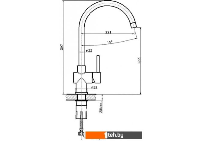 | Длина (вылет) излива | 221 мм |