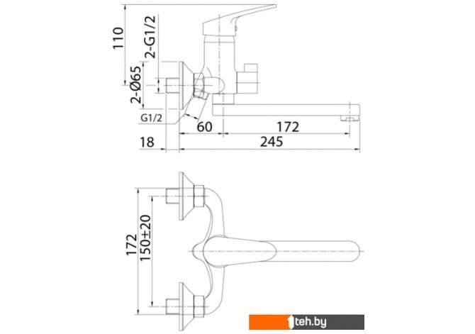 | Длина (вылет) излива | 172 мм |