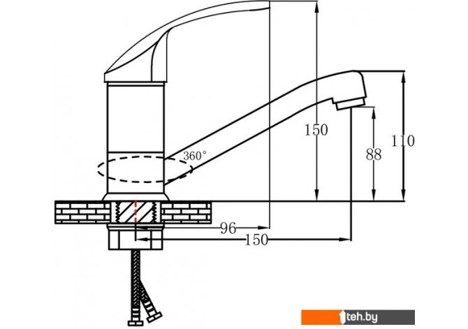 | Длина (вылет) излива | 150 мм |