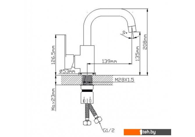 | Длина (вылет) излива | 139 мм |