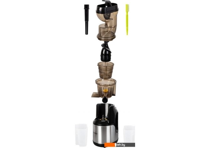 | Комплектация | Соковыжималка, Загрузочный лоток, Чаша, Мелкоячеистый фильтр, Резервуар для сока и мякоти – 2 шт., Шнек, Чистящая щетка, Толкатель, Руководство по эксплуатации |