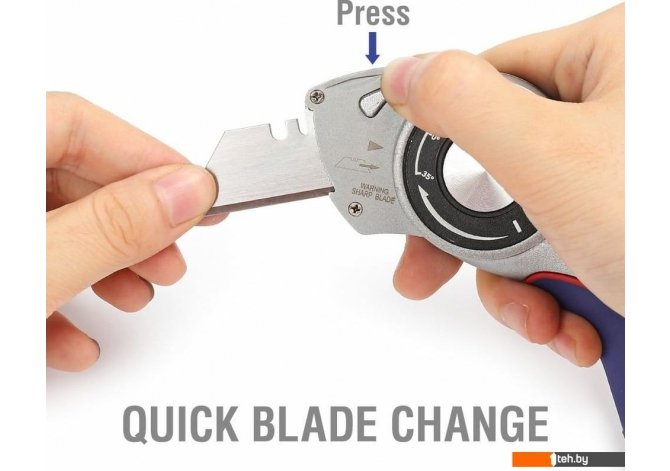 | Информация | -Универсальный складной нож WORKPRO WP211013 предназначен для резки различных материалов и оснащён трапециевидными лезвиями, которые обеспечивают точный и аккуратный рез. -Корпус ножа выполнен из литого под давлением алюминиевого сплава с порошковым покрытием, что гарантирует высокую прочность и защиту от коррозии, а также долговечность инструмента. -Нож оснащён удобным 3-позиционным поворотным механизмом с углами -35°/0°/+35°, позволяющим настроить оптимальный угол резки для различных задач. Механизм быстрой смены лезвий облегчает замену режущих элементов. -Рукоять выполнена из алюминия с эргономичным противоскользящим двухкомпонентным покрытием, что обеспечивает комфорт и безопасность при работе. Отверстие для подвеса позволяет удобно хранить нож. Читать дальше |