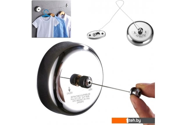 | Информация | Выдвижной, стальной трос для сушки белья. Идеально подходит в небольших помещениях. Трос имеет блокировку, которая предотвращает его случайное сворачивании. |