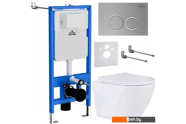 | Информация | Комплект инсталляции 6 в 1 Roxen StounFix Slim 524734 с удлиненными креплениями в комплекте, шумоизоляционной плитой, кнопкой смыва Roxen Santi 410260M ?и подвесным унитазом Roxen Antares 530185-01 Rimless Soft Close. Система инсталляции для унитаза Roxen StounFix Slim 710200 - надежная усиленная ультратонкая модель для максимальной экономии свободного пространства. Оптимальная выверенная монтажная глубина 120 мм позволяет создать необходимое давление в смывном бачке для максимально мощного смывного потока воды! Инсталляция Roxen StounFix Slim выполнена из высокопрочной стали и покрыта специальной порошковой краской, методом автоматического вакуумного напыления. Бачок защищен дополнительной шумоизоляционной пластиной S-Protect, которая предотвращает образование конденсата и плесени. Механическое управление смыва обеспечивает бесперебойную работу на весь срок службы. Инсталляция комплектуется удлиненными креплениями Plattenbau (при помощи удлиненных шпилек 50 см), что позволит вам без проблем отрегулировать необходимую монтажную глубину. Особенности инсталляции: усиленная монтажная рама выдерживает до 400 кг нагрузки, при испытуемой нагрузке 800 кг ультратонкий монтаж - монтажная глубина 120 мм подходит для всех типов унитазов (18 см, 23 см) удлиненные крепления механическое управление смыва цельнолитой бачок выполнен из высококачественного пластика HDPE шумоизоляционная пластина S-Protect, предотвращает образование конденсата и плесени объем бачка: 3/6 л расширенное ревизионное окно для быстрого и легкого доступа к сливной арматуре тихое наполнение бачка 2-х режимная система смыва шумоизоляционная плита латунный запорный вентиль гарантия производителя 25 лет Кнопка для инсталляции Roxen Santi 410260M - ультратонкая смывная клавиша Slim Button (толщина - 8 мм). Стильный минималистичный дизайн с удобными круглыми клавишами с серебристой окантовкой, придаст вашему санузлу изящный внешний вид. Кнопка изготовлена из ударопрочного, экологически чистого ABS пластика марки HDPE, имеет нестираемое покрытие поверхности. Быстросъемная система Easy Fix обеспечивает быстрый доступ к коммуникациям (монтаж и демонтаж клавиши осуществляется без специального инструмента). Надежный механизм клавиши рассчитан на 200 000 циклов. Характеристики клавиши смыва: цвет: хром матовый ширина, мм: 246 высота, мм: 165 толщина, мм: 8 управление: механическое материал: пластик HDPE ударопрочная нестираемое покрытие поверхности специальное антибактериальное покрытие Purity бесшумная двухрежимная система смыва LightTouch быстросъемная система Easy Fix для быстрого доступа к коммуникациям Подвесной унитаз Roxen Antares 530185-01 Rimless Soft Close - компактная модель с удобной безободковой чашей Pro-Rimless, благодаря чему нет труднодоступных зон для уборки. Изготовлен из санитарного фарфора Porcelain, который обеспечивает прочность изделия, белизну, абсолютно гладкую поверхность, отсутствие пор и углублений. Специальное антибактериальное покрытие Ultra Glide обеспечивает легкий уход, гигиеничность и первоначальный внешний вид на долгие годы. Модель укомплектована тонким быстросъемным сиденьем с крышкой Soft Close (плавное опускание). размер (ГхШхВ), см: 485х365х365 материал: санитарный фарфор антибактериальное покрытие безободковая чаша круговое омывание чаши дюропластовое быстросъемное сиденье Slim (тонкое) система Soft Close (медленное опускание крышки) металлические крепления 