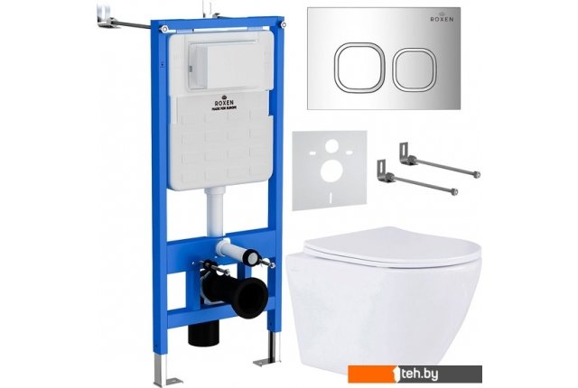 | Информация | Комплект инсталляции 6 в 1 Roxen StounFix Slim 546881 с удлиненными креплениями в комплекте, шумоизоляционной плитой, кнопкой смыва Roxen Santi 410280CH ?и подвесным унитазом Roxen Antares 530185-01 Rimless Soft Close. Система инсталляции для унитаза Roxen StounFix Slim 710200 - надежная усиленная ультратонкая модель для максимальной экономии свободного пространства. Оптимальная выверенная монтажная глубина 120 мм позволяет создать необходимое давление в смывном бачке для максимально мощного смывного потока воды! Инсталляция Roxen StounFix Slim выполнена из высокопрочной стали и покрыта специальной порошковой краской, методом автоматического вакуумного напыления. Бачок защищен дополнительной шумоизоляционной пластиной S-Protect, которая предотвращает образование конденсата и плесени. Механическое управление смыва обеспечивает бесперебойную работу на весь срок службы. Инсталляция комплектуется удлиненными креплениями Plattenbau (при помощи удлиненных шпилек 50 см), что позволит вам без проблем отрегулировать необходимую монтажную глубину. Особенности инсталляции: усиленная монтажная рама выдерживает до 400 кг нагрузки, при испытуемой нагрузке 800 кг ультратонкий монтаж - монтажная глубина 120 мм подходит для всех типов унитазов (18 см, 23 см) удлиненные крепления механическое управление смыва цельнолитой бачок выполнен из высококачественного пластика HDPE шумоизоляционная пластина S-Protect, предотвращает образование конденсата и плесени объем бачка: 3/6 л расширенное ревизионное окно для быстрого и легкого доступа к сливной арматуре тихое наполнение бачка 2-х режимная система смыва шумоизоляционная плита латунный запорный вентиль гарантия производителя 25 лет Кнопка для инсталляции Roxen Santi 410280CH - ультратонкая смывная клавиша Slim Button (толщина - 8 мм). Стильный минималистичный дизайн с удобными клавишами придаст вашему санузлу изящный внешний вид. Кнопка изготовлена из ударопрочного, экологически чистого ABS пластика марки HDPE, имеет нестираемое покрытие поверхности. Быстросъемная система Easy Fix обеспечивает быстрый доступ к коммуникациям (монтаж и демонтаж клавиши осуществляется без специального инструмента). Надежный механизм клавиши рассчитан на 200 000 циклов. Характеристики клавиши смыва: цвет: хром глянцевый ширина, мм: 246 высота, мм: 165 толщина, мм: 8 управление: механическое материал: пластик HDPE ударопрочная нестираемое покрытие поверхности специальное антибактериальное покрытие Purity бесшумная двухрежимная система смыва LightTouch быстросъемная система Easy Fix для быстрого доступа к коммуникациям Подвесной унитаз Roxen Antares 530185-01 Rimless Soft Close - компактная модель с удобной безободковой чашей Pro-Rimless, благодаря чему нет труднодоступных зон для уборки. Изготовлен из санитарного фарфора Porcelain, который обеспечивает прочность изделия, белизну, абсолютно гладкую поверхность, отсутствие пор и углублений. Специальное антибактериальное покрытие Ultra Glide обеспечивает легкий уход, гигиеничность и первоначальный внешний вид на долгие годы. Модель укомплектована тонким быстросъемным сиденьем с крышкой Soft Close (плавное опускание). размер (ГхШхВ), см: 485х365х365 материал: санитарный фарфор антибактериальное покрытие безободковая чаша круговое омывание чаши дюропластовое быстросъемное сиденье Slim (тонкое) система Soft Close (медленное опускание крышки) металлические крепления Особенности унитазов Roxen: Все из