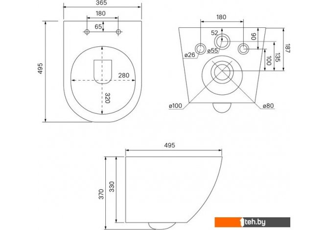 | Отверстия под инсталляцию | 180 мм |