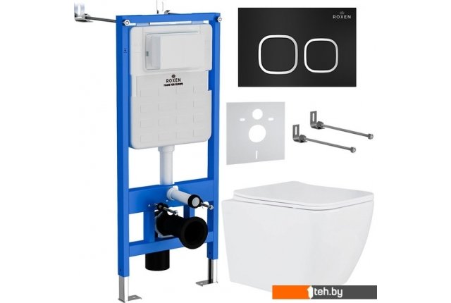 | Информация | Комплект инсталляции 6 в 1 Roxen StounFix Slim 543879 с удлиненными креплениями в комплекте, шумоизоляционной плитой, кнопкой смыва Roxen Santi 410280B ?и подвесным унитазом Roxen Cube 530135-01 Rimless Soft Close. Система инсталляции для унитаза Roxen StounFix Slim 710200 - надежная усиленная ультратонкая модель для максимальной экономии свободного пространства. Оптимальная выверенная монтажная глубина 120 мм позволяет создать необходимое давление в смывном бачке для максимально мощного смывного потока воды! Инсталляция Roxen StounFix Slim выполнена из высокопрочной стали и покрыта специальной порошковой краской, методом автоматического вакуумного напыления. Бачок защищен дополнительной шумоизоляционной пластиной S-Protect, которая предотвращает образование конденсата и плесени. Механическое управление смыва обеспечивает бесперебойную работу на весь срок службы. Инсталляция комплектуется удлиненными креплениями Plattenbau (при помощи удлиненных шпилек 50 см), что позволит вам без проблем отрегулировать необходимую монтажную глубину. Особенности инсталляции: усиленная монтажная рама выдерживает до 400 кг нагрузки, при испытуемой нагрузке 800 кг ультратонкий монтаж - монтажная глубина 120 мм подходит для всех типов унитазов (18 см, 23 см) удлиненные крепления механическое управление смыва цельнолитой бачок выполнен из высококачественного пластика HDPE шумоизоляционная пластина S-Protect, предотвращает образование конденсата и плесени объем бачка: 3/6 л расширенное ревизионное окно для быстрого и легкого доступа к сливной арматуре тихое наполнение бачка 2-х режимная система смыва шумоизоляционная плита латунный запорный вентиль гарантия производителя 25 лет Кнопка для инсталляции Roxen Santi 410280B - ультратонкая смывная клавиша Slim Button (толщина - 8 мм). Стильный минималистичный дизайн кнопки в черном цвете с удобными клавишами в хромированном обрамлении, придаст вашему санузлу изящный внешний вид. Кнопка изготовлена из ударопрочного, экологически чистого ABS пластика марки HDPE, имеет нестираемое покрытие поверхности. Быстросъемная система Easy Fix обеспечивает быстрый доступ к коммуникациям (монтаж и демонтаж клавиши осуществляется без специального инструмента). Надежный механизм клавиши рассчитан на 200 000 циклов. Характеристики клавиши смыва: цвет: черный матовый, с хромированной окантовкой ширина, мм: 246 высота, мм: 165 толщина, мм: 8 управление: механическое материал: пластик HDPE ударопрочная нестираемое покрытие поверхности специальное антибактериальное покрытие Purity бесшумная двухрежимная система смыва LightTouch быстросъемная система Easy Fix для быстрого доступа к коммуникациям. Подвесной унитаз Roxen Cube 530135-01 Rimless Soft Close - стильная модель с удобной безободковой чашей Pro-Rimless, благодаря чему нет труднодоступных зон для уборки. Инновационная конструкция чаши унитаза позволяет избежать попадания брызг воды при смыве. Изготовлен из санитарного фарфора Porcelain, который обеспечивает прочность изделия, белизну, абсолютно гладкую поверхность, отсутствие пор и углублений. Специальное антибактериальное покрытие Ultra Glide обеспечивает легкий уход, гигиеничность и первоначальный внешний вид на долгие годы. Модель укомплектована тонким быстросъемным сиденьем с крышкой Soft Close (плавное опускание). размер (ГхШхВ), мм: 515х365х350 высота от пола, мм: 400-420 материал: санитарный фарфор антибактериальное покрытие без