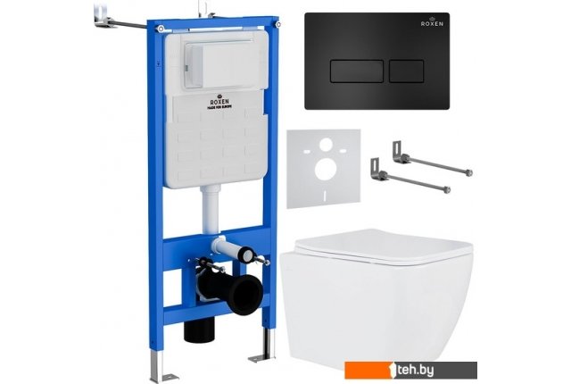 | Информация | Комплект инсталляции 6 в 1 Roxen StounFix Slim 579341 с удлиненными креплениями в комплекте, шумоизоляционной плитой, кнопкой смыва Roxen Caspia 410280B ?и подвесным унитазом Roxen Cube 530135-01 Rimless Soft Close. Система инсталляции для унитаза Roxen StounFix Slim 710200 - надежная усиленная ультратонкая модель для максимальной экономии свободного пространства. Оптимальная выверенная монтажная глубина 120 мм позволяет создать необходимое давление в смывном бачке для максимально мощного смывного потока воды! Инсталляция Roxen StounFix Slim выполнена из высокопрочной стали и покрыта специальной порошковой краской, методом автоматического вакуумного напыления. Бачок защищен дополнительной шумоизоляционной пластиной S-Protect, которая предотвращает образование конденсата и плесени. Механическое управление смыва обеспечивает бесперебойную работу на весь срок службы. Инсталляция комплектуется удлиненными креплениями Plattenbau (при помощи удлиненных шпилек 50 см), что позволит вам без проблем отрегулировать необходимую монтажную глубину. Особенности инсталляции: усиленная монтажная рама выдерживает до 400 кг нагрузки, при испытуемой нагрузке 800 кг ультратонкий монтаж - монтажная глубина 120 мм подходит для всех типов унитазов (18 см, 23 см) удлиненные крепления механическое управление смыва цельнолитой бачок выполнен из высококачественного пластика HDPE шумоизоляционная пластина S-Protect, предотвращает образование конденсата и плесени объем бачка: 3/6 л расширенное ревизионное окно для быстрого и легкого доступа к сливной арматуре тихое наполнение бачка 2-х режимная система смыва шумоизоляционная плита латунный запорный вентиль гарантия производителя 25 лет Кнопка для инсталляции Roxen Caspia 410280B - ультратонкая смывная клавиша Slim Button (толщина - 8 мм). Стильный минималистичный дизайн с удобными прямоугольными клавишами придаст вашему санузлу изящный внешний вид. Кнопка изготовлена из ударопрочного, экологически чистого ABS пластика марки HDPE, имеет нестираемое покрытие поверхности. Быстросъемная система Easy Fix обеспечивает быстрый доступ к коммуникациям (монтаж и демонтаж клавиши осуществляется без специального инструмента). Надежный механизм клавиши рассчитан на 200 000 циклов. Характеристики клавиши смыва: цвет: черный матовый размеры клавиши (ШхВхГ), мм: 246х165х8 управление: механическое материал: пластик HDPE ударопрочная нестираемое покрытие поверхности специальное антибактериальное покрытие Purity бесшумная двухрежимная система смыва LightTouch быстросъемная система Easy Fix для быстрого доступа к коммуникациям Подвесной унитаз Roxen Cube 530135-01 Rimless Soft Close - стильная модель с удобной безободковой чашей Pro-Rimless, благодаря чему нет труднодоступных зон для уборки. Инновационная конструкция чаши унитаза позволяет избежать попадания брызг воды при смыве. Изготовлен из санитарного фарфора Porcelain, который обеспечивает прочность изделия, белизну, абсолютно гладкую поверхность, отсутствие пор и углублений. Специальное антибактериальное покрытие Ultra Glide обеспечивает легкий уход, гигиеничность и первоначальный внешний вид на долгие годы. Модель укомплектована тонким быстросъемным сиденьем с крышкой Soft Close (плавное опускание). размер (ГхШхВ), мм: 515х365х350 высота от пола, мм: 400-420 материал: санитарный фарфор антибактериальное покрытие безободковая чаша круговое омывание чаши дюропластовое быстросъемное 