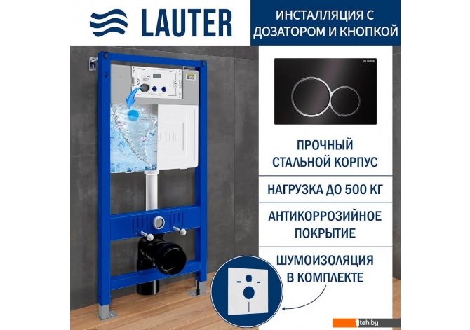 | Информация | - Подвесной унитаз — это идеальное сочетание современного дизайна и функциональности. С унитазом Lauter ваше пространство всегда будет выглядеть стильно и аккуратно. - Чаша унитаза оснащена сиденьем, которое идеально подходит для людей разных возрастов и комплекций. Удобная форма сиденья обеспечивает комфорт, а быстросъемная система позволяет легко установить или снять его всего за несколько секунд, без необходимости в инструментах. - Сиденье выполнено из дюропласта — материала с высокой прочностью и низкой пористостью, что предотвращает накопление микроорганизмов. Гладкая поверхность сиденья легко очищается, достаточно просто протереть его влажной салфеткой с неабразивным моющим средством. - Корпус инсталляции Lauter изготовлен из стали и покрыт прочной порошковой краской, что защищает его от коррозии. В комплект входит изолированный бачок скрытого монтажа, а доступ к коммуникациям осуществляется через ревизионное отверстие смывной клавиши. Регулируемые по высоте выдвижные опоры обеспечивают удобство установки. - Кнопка смыва механическая с ручным управлением добавляет индивидуальности вашему интерьеру. Практичная клавиша Lauter выполнена из высококачественного пластика, что гарантирует долговечность и надежность. |