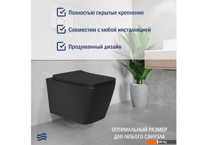 Magdeburg с жестким сиденьем Soft Close 21103EC (черный матовый, скрытое крепление)